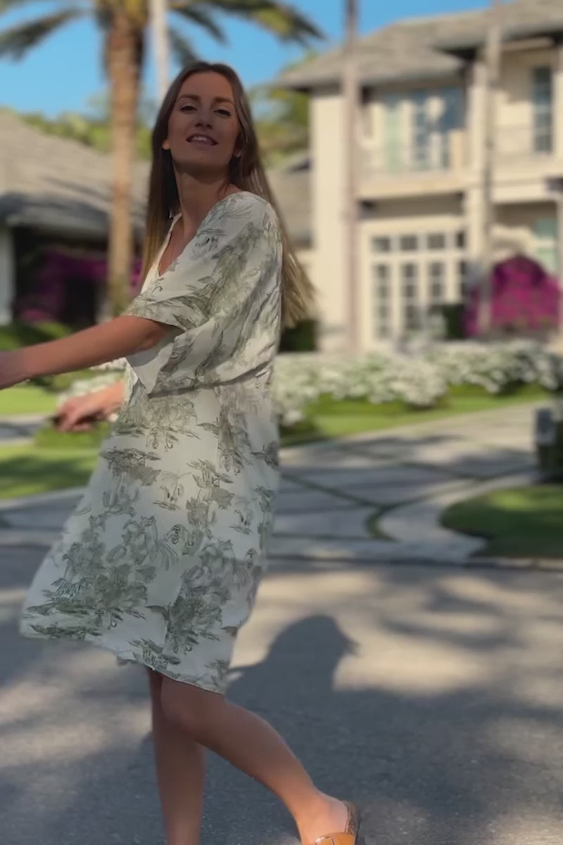 - Feminine, classic and comfortable, our Cream and Olive Toile de Jouy Viscose Dress is ready to come out and play.