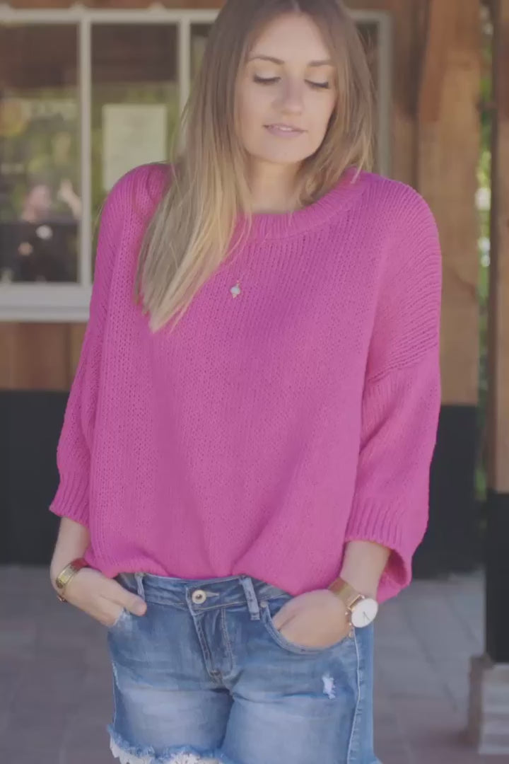 SKU: TOP I148 COTON COL ROND FUCHSIA