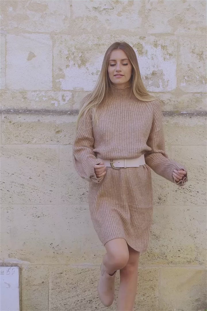 – Ice brown ribbed knit soft and cosy sweater dress.