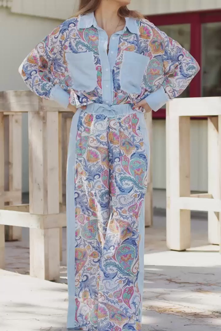 - Invoke your inner Boho babe in our Paisley and Denim Lightweight Button-Down.