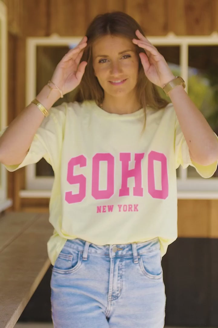 Pastel Yellow SOHO New York Varsity Tee