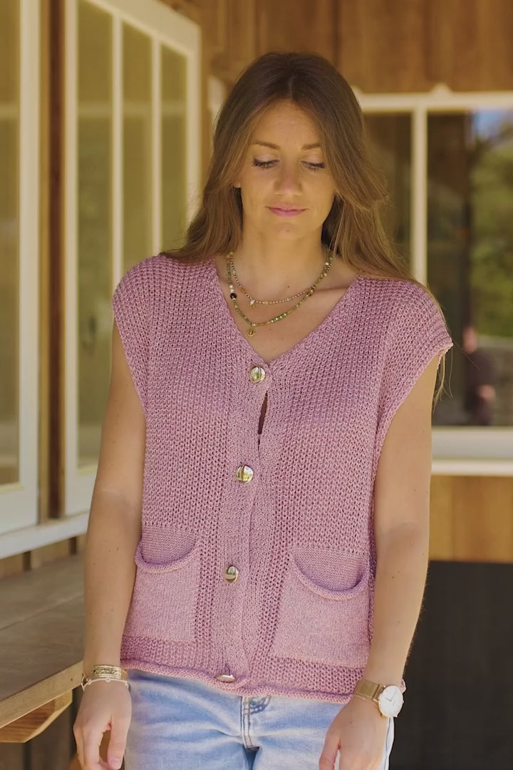 - Wear this chunky knit vest over your favorite summer dresses for a sophisticated way to add sweater knits to your warm weather style.