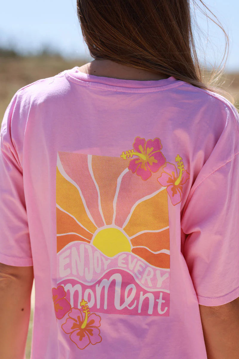 Pink “Enjoy Every Moment” Hibiscus Tee