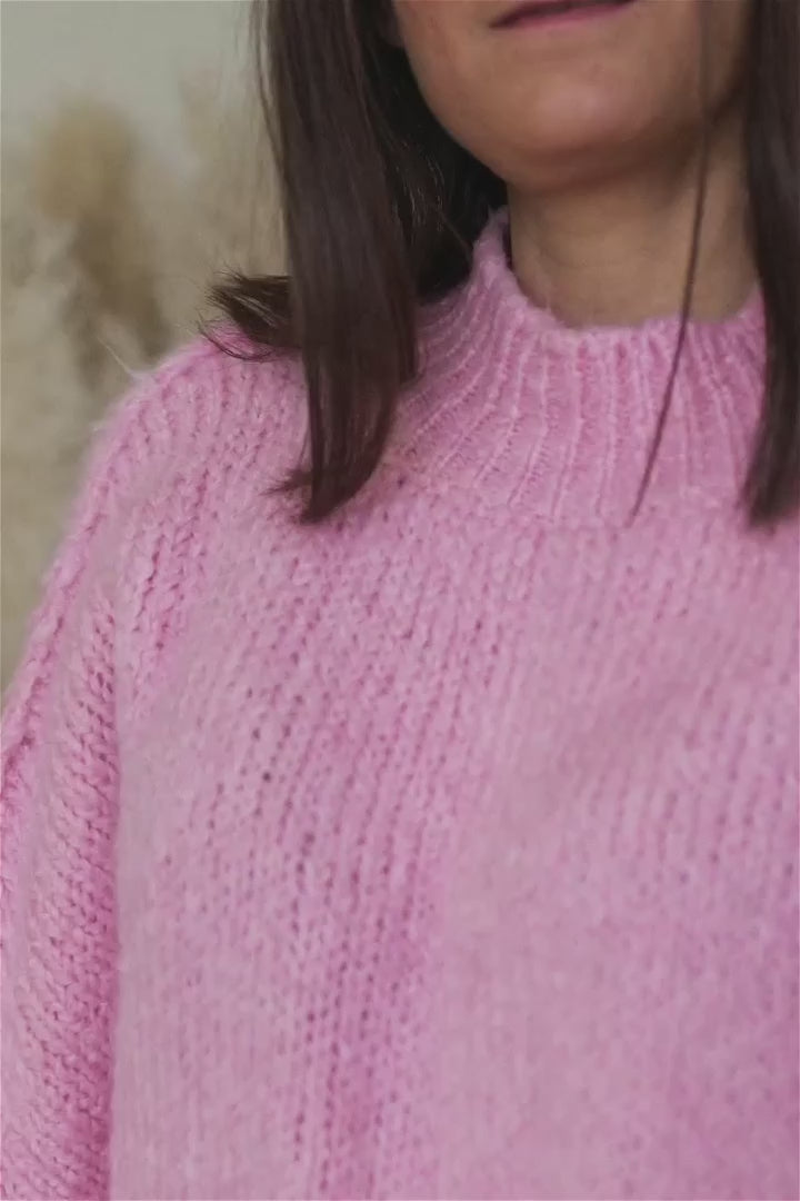 Powder pink Chunky Knit Sweater Oversized and Funnel Neck