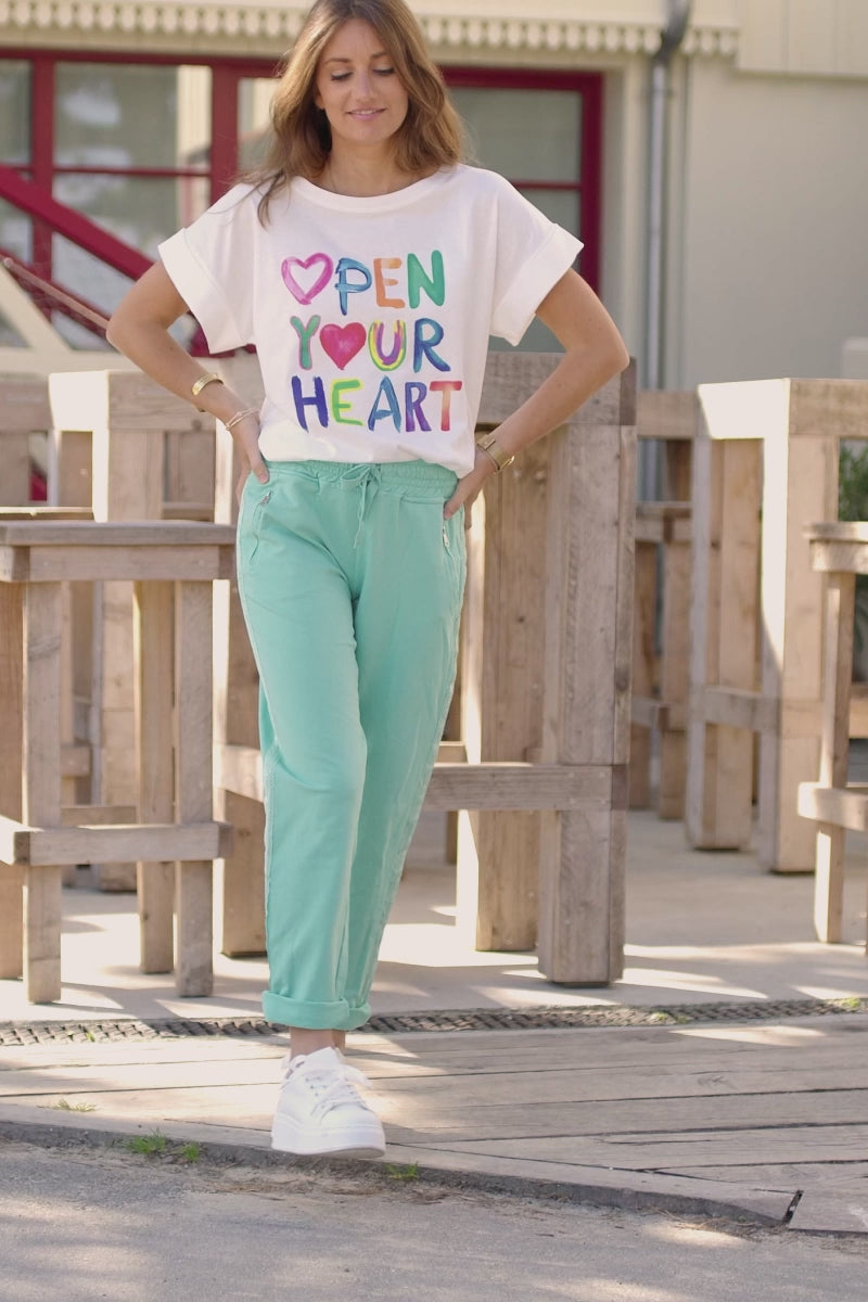 Turquoise cotton jogging bottoms with embroidered cheveron outseams