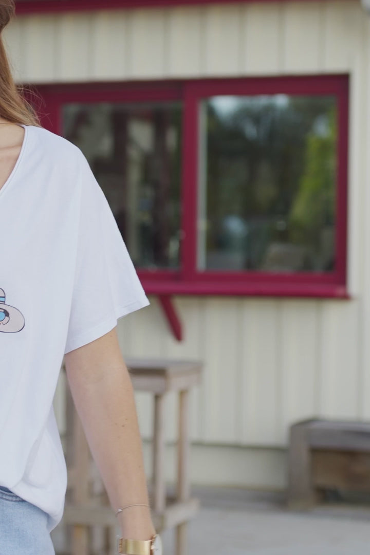 White Blue “Vacation Girlfriends” V-Neck Tee