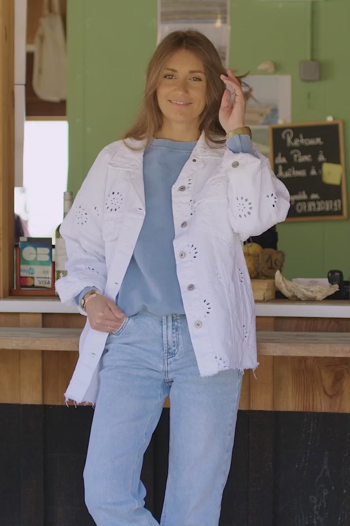 - Wear this eyelet jacket over your favorite Boho dresses and jeans for the perfect addition to your resort wear wardrobe.