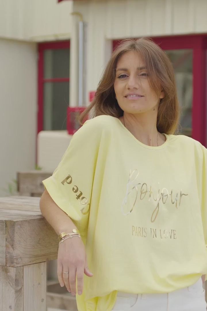 Yellow “Bonjour” French Scoop Neck Tee